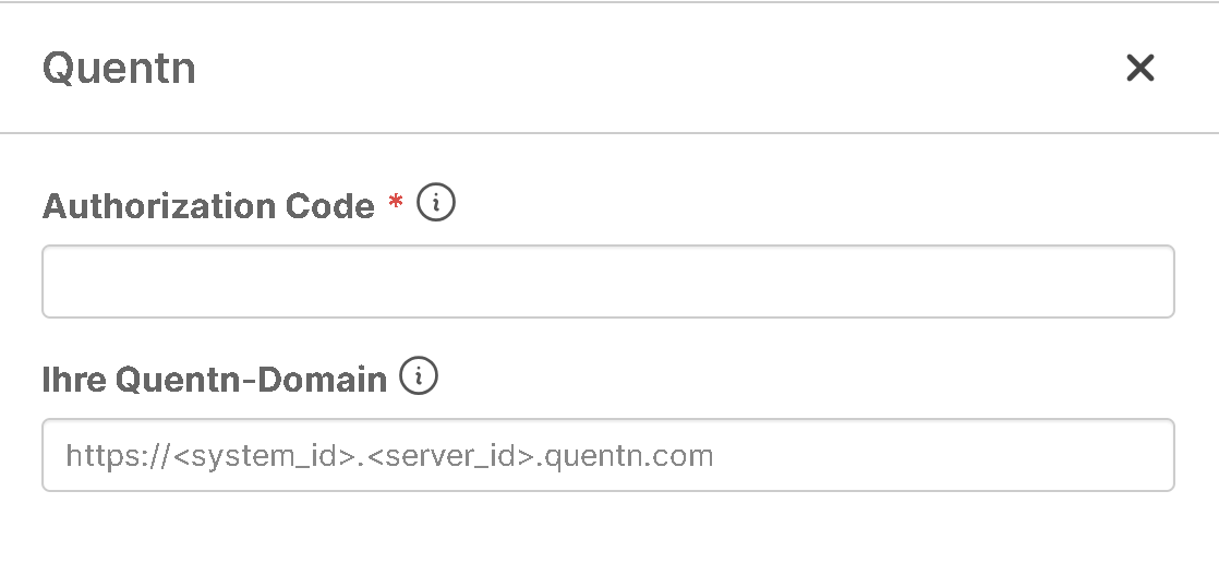 3. Hier benötigst du nun deine Quentn-Domain und den Authorization Code.